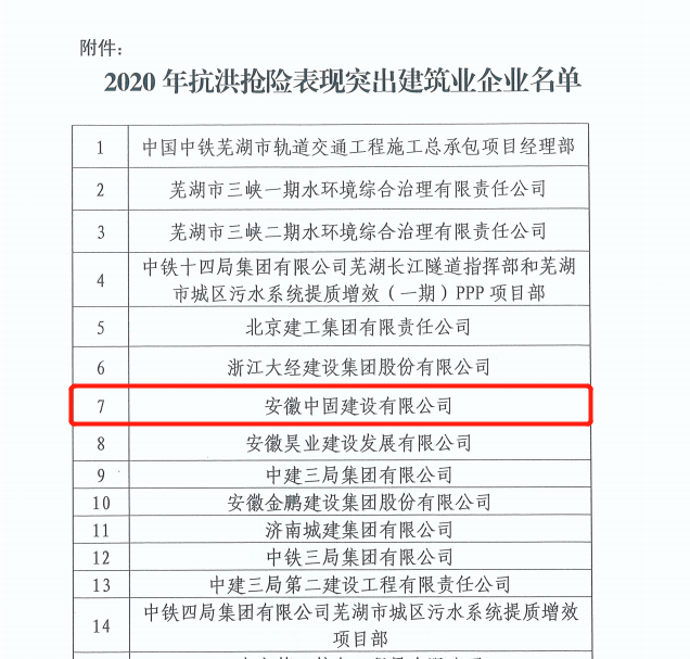 近日,蕪湖市住房和城鄉(xiāng)建設(shè)局對2020年度抗洪搶險表現(xiàn)突出企業(yè)進(jìn)行了表彰。