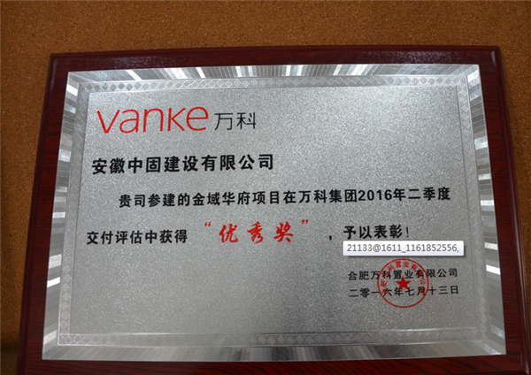 近日,由公司承建的合肥萬科金域華府項目傳來捷報,在萬科集團(tuán)2016年二季度交付評估中獲得“優(yōu)秀獎”,合肥萬科置業(yè)有限公司對我公司予以表彰。此獎項既是對公司各項施工質(zhì)量的肯定,也是對公司項目管理團(tuán)隊在項目交付過程中的配合度的認(rèn)同。