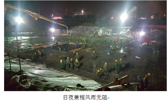 五月伊始,公司各兄弟項目部不斷傳來喜訊:蕪湖萬科城、信達天御、華府五期和森林城C4均傳來捷報,我信達公園里項目部也不甘示弱,在兄弟們?nèi)找辜娉田L雨無阻的拼搏下,終于于2016年5月30日完成售樓部結(jié)構(gòu)封頂任務(wù),圓滿完成合同節(jié)點工期。信達.公園里項目S12#樓(售樓部)土建工程施工項目位于合肥市濱湖新區(qū)杭州路與廬州大道交口,總建筑面積4248.30平方米,占地面積約1900平方米,建筑高度度15.35米。結(jié)構(gòu)類型為現(xiàn)澆框架結(jié)構(gòu),地下1層為下沉庭院、商業(yè),負一層層高4.5米,地上3層為商業(yè),一層層高5.6米,二層層高4.8米,三層層高4.5米。信達.公園里項目S12#樓(售樓部)項目部,開工日期2016年4月15日,結(jié)構(gòu)封頂工期45天。該工程業(yè)態(tài)豐富,結(jié)構(gòu)形式復雜,且?guī)в幸粚拥叵率?,最低層?.5米,局部為高支模,且為汽車吊作業(yè);在工程施工階段,恰逢合肥陰雨天氣,45天的工期里下了十幾天的雨,且在施工過程中設(shè)計圖紙不斷的進行變更,在如此艱難的客觀條件下,項目部兄弟無畏艱難,齊心協(xié)力,通過增加班組的人力和物力投入,日夜兼程、風雨無阻,終于克服的一切困難,圓滿的完成任務(wù),給業(yè)主交出了一份滿意的答卷。