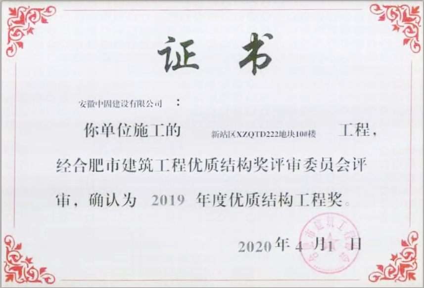 皖投天下藝境 10#樓優(yōu)質(zhì)結(jié)構(gòu)獎(jiǎng)