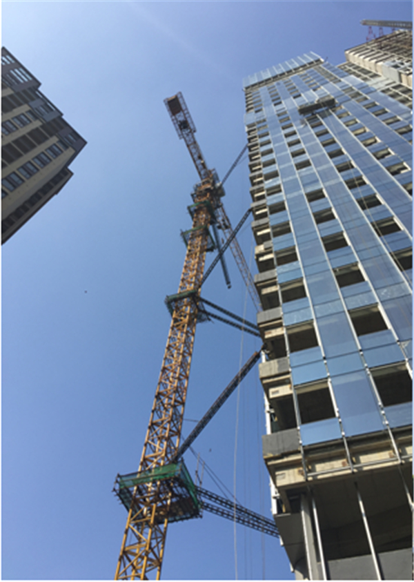 合肥萬(wàn)科金域華府五期項(xiàng)目主樓塔吊因其位置和場(chǎng)地狹小的特殊性,是公司在建項(xiàng)目塔吊拆除難度最大的。該塔吊的拆除難度特點(diǎn)主要體現(xiàn)在以下幾個(gè)方面: 1、由于華府五期萬(wàn)科穿插作業(yè)分包單位多,綠化景觀都已完成,大型汽車吊裝機(jī)械不易進(jìn)場(chǎng)作業(yè)。 2、塔吊拆除區(qū)域是售樓部、商業(yè)區(qū)和五里墩立交橋輔道,人員、車輛較多。 3、塔吊位置距主樓位置較遠(yuǎn),扶墻長(zhǎng)度達(dá)11米,拆除扶墻時(shí)吊裝難度大。塔吊拆除前,項(xiàng)目專職安全管理人員與安全部一起組織各相關(guān)單位制定專項(xiàng)拆除施工方案,在合肥市站的支持下,邀請(qǐng)相關(guān)人員多方論證,制定了完善的拆除作業(yè)程序和安全保障措施,并在現(xiàn)場(chǎng)對(duì)作業(yè)人員進(jìn)行了詳細(xì)的安全技術(shù)交底工作,項(xiàng)目專職安全管理人員全程旁站監(jiān)督。塔吊自2016年5月11日開始正式進(jìn)行拆除作業(yè),在各方人員的共同努力和堅(jiān)持下,2016年5月15日?qǐng)A滿完成了對(duì)該塔吊的拆除作業(yè)。為公司積累了高難度塔吊拆除作業(yè)的施工經(jīng)驗(yàn),為日后相關(guān)機(jī)械的拆除作業(yè)提供了技術(shù)和安全方面的參考。