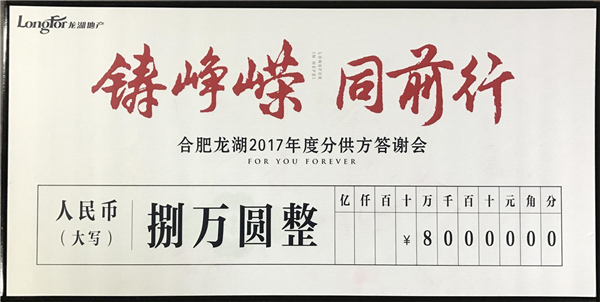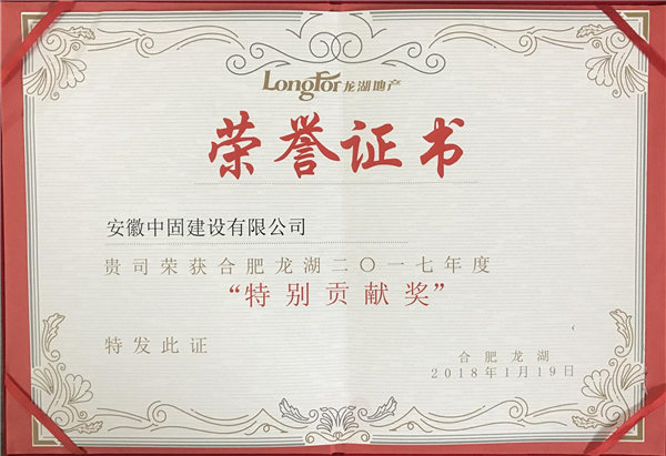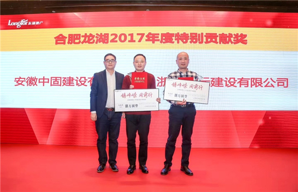 新年新氣象。在1月19日合肥龍湖2017年度分供方答謝會(huì)上,安徽中固建設(shè)有限公司榮獲2017年度特別貢獻(xiàn)獎(jiǎng),并獲得了8萬元獎(jiǎng)金,公司總經(jīng)理陶征強(qiáng)出席答謝會(huì)并接受頒獎(jiǎng)。