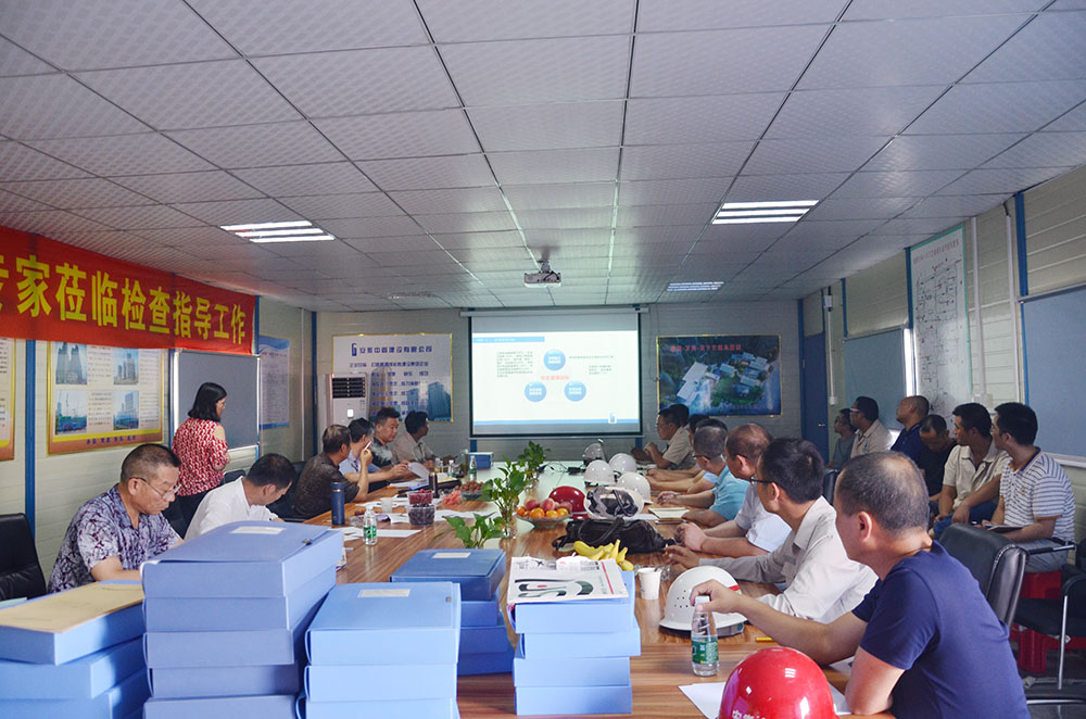 圖為市建筑協(xié)會(huì)領(lǐng)導(dǎo)和專家組聽(tīng)取施工單位情況匯報(bào)