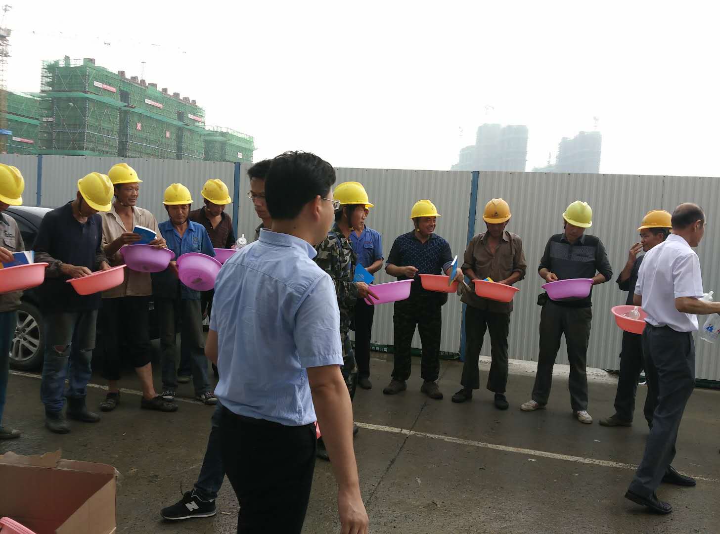 為員工發(fā)放礦泉水