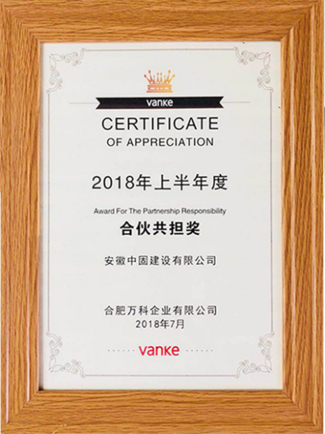 近日,合肥萬科2018年中合作伙伴溝通會議盛大召開,安徽中固建設(shè)有限公司作為萬科地產(chǎn)的長期合作合作伙伴應(yīng)邀參會。會上,中固建設(shè)被授予“2018年上半年度合伙共擔(dān)獎”、“2018年上半年度安全管理獎”、“2018年上半年度精工比武獎”。