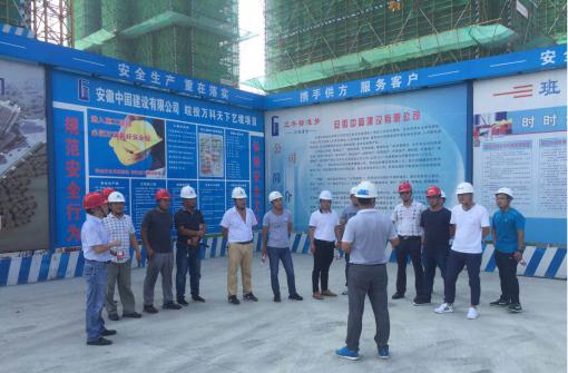 檢查組一行對項目施工現(xiàn)場進行了觀摩。在交流會上,中固建設(shè)·皖投萬科天下藝境項目部介紹了公司安全生產(chǎn)標準化等內(nèi)容,以及項目部結(jié)合公司的標準化在項目上具體落實和管控的一些做法。